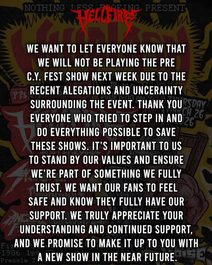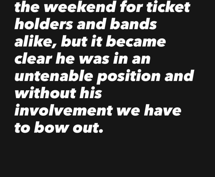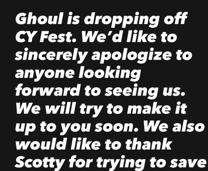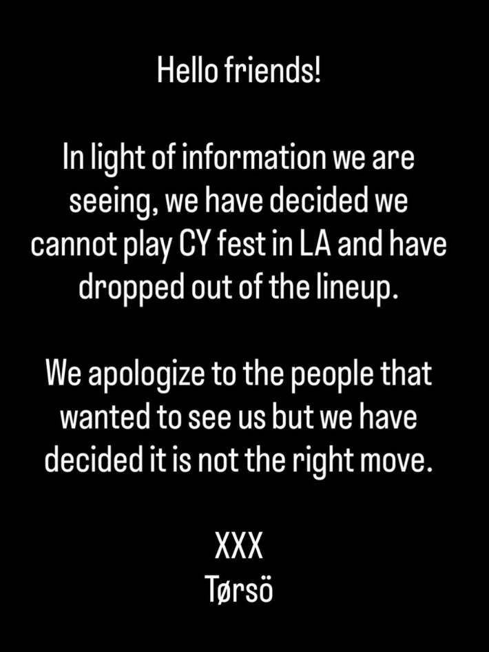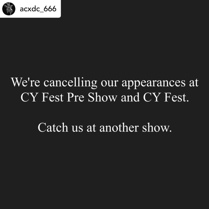 Comments had already been disabled on CY Fest's Instagram, however fans on the bands' posts had been asking about refunds (tickets are reportedly non-refundable) and about whether Rodriguera's company still had a financial interest in the event even though he's stepped away.
