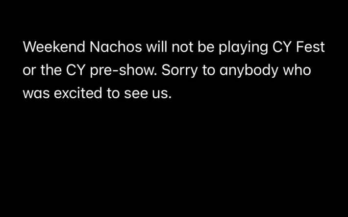 The C.Y. festival has recently faced significant challenges due to false allegations and misinformation. I am stepping away to focus entirely on addressing these matters through the proper legal channels. My priority is ensuring that the community can still come together and have a great weekend without distractions. I'm announcing that the venues and their staff, along with an outside promoter will be stepping in to run the festival/shows. I have full confidence that their team will deliver the experience you all deserve.